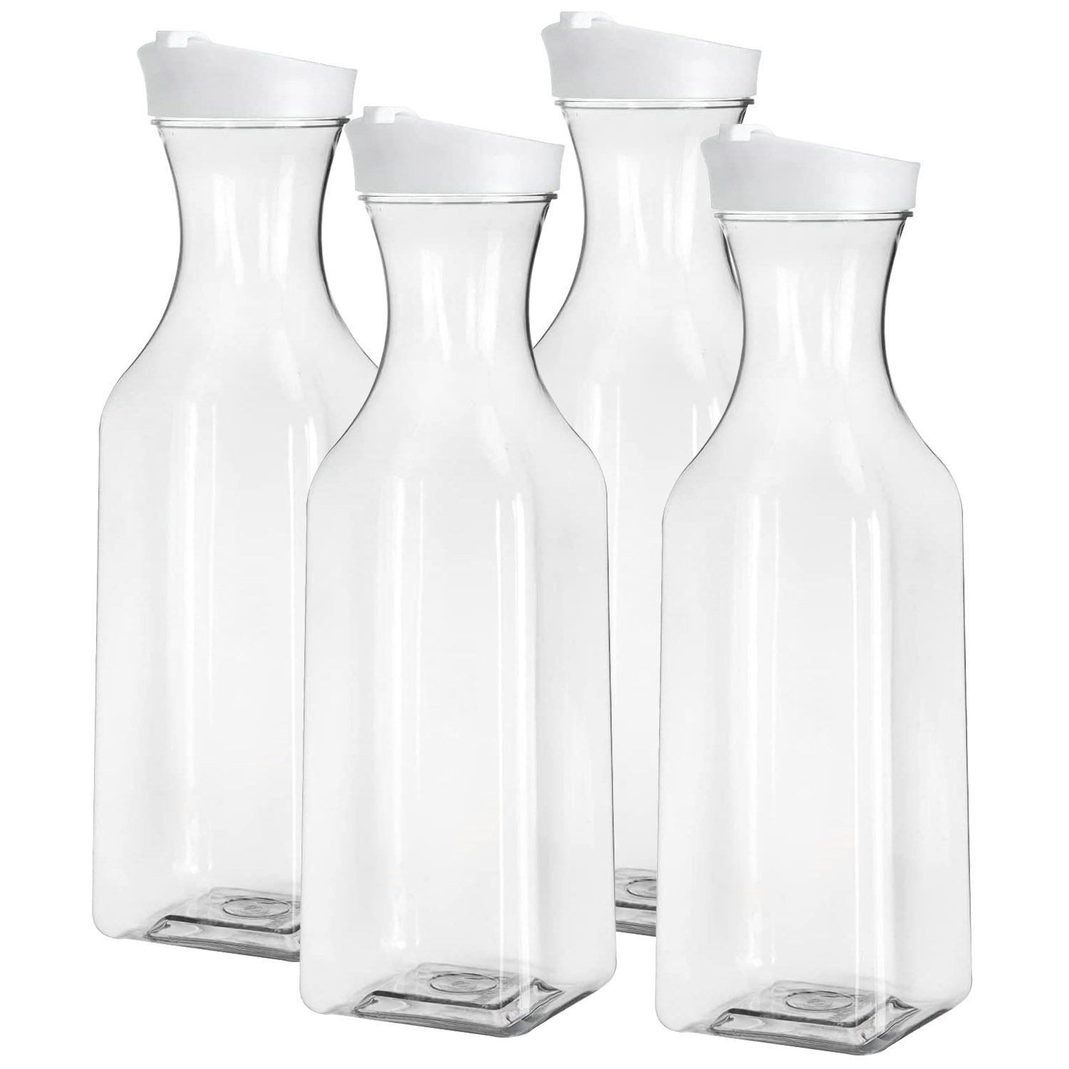 Home > 4 Pack 50Oz Water Carafes with Flip Top Lids Square Juice Containers for Fridge Plastic Clear Pitchers for Water Iced Tea Juice Lemonade Milk Cold Bre