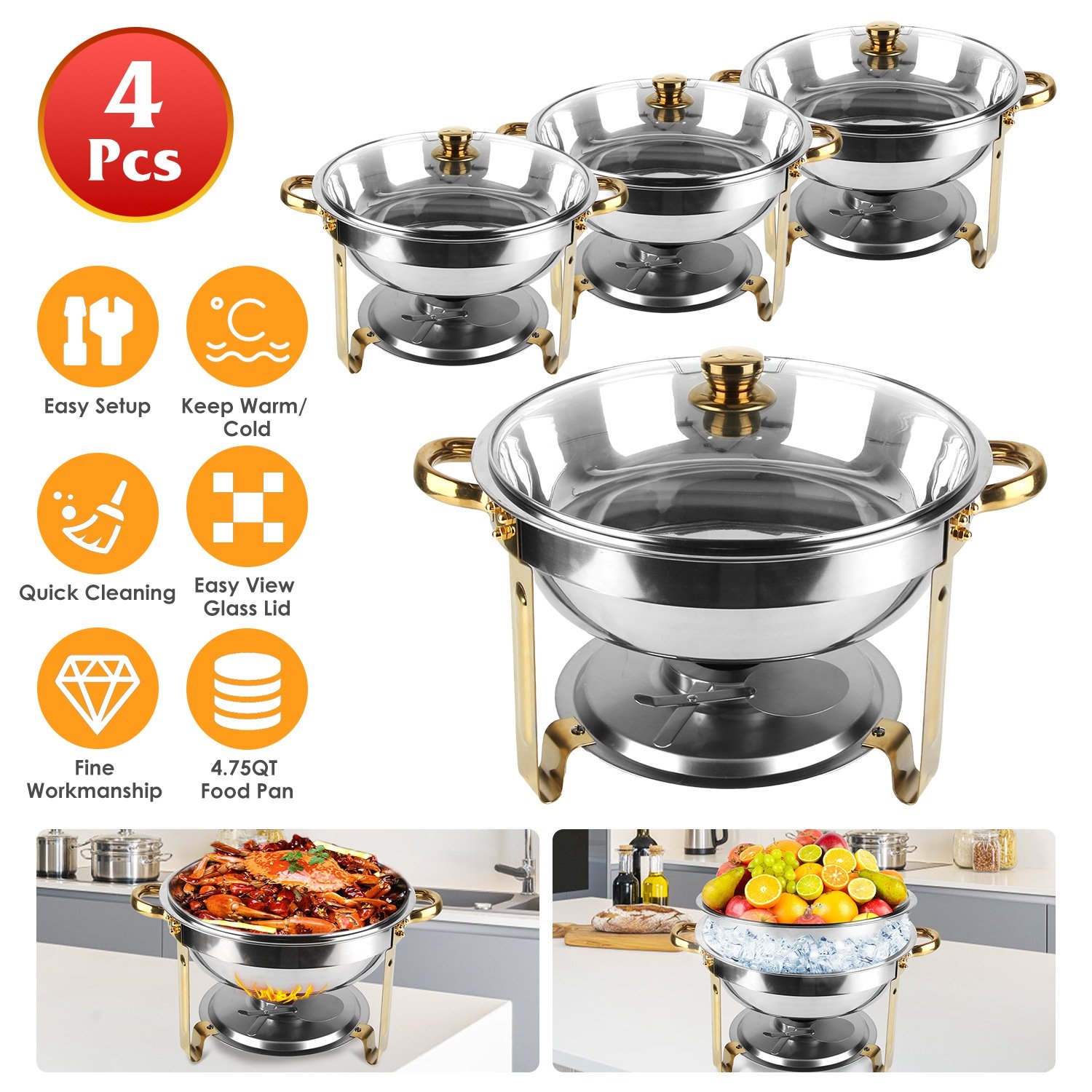 Home > 4Pcs Chafing Dish Buffet Set 4.76QT Round Buffet Servers Food Warmer Stainless Steel Catering Chafer with Glass Lid for Warming Cooling Gatherings Ban