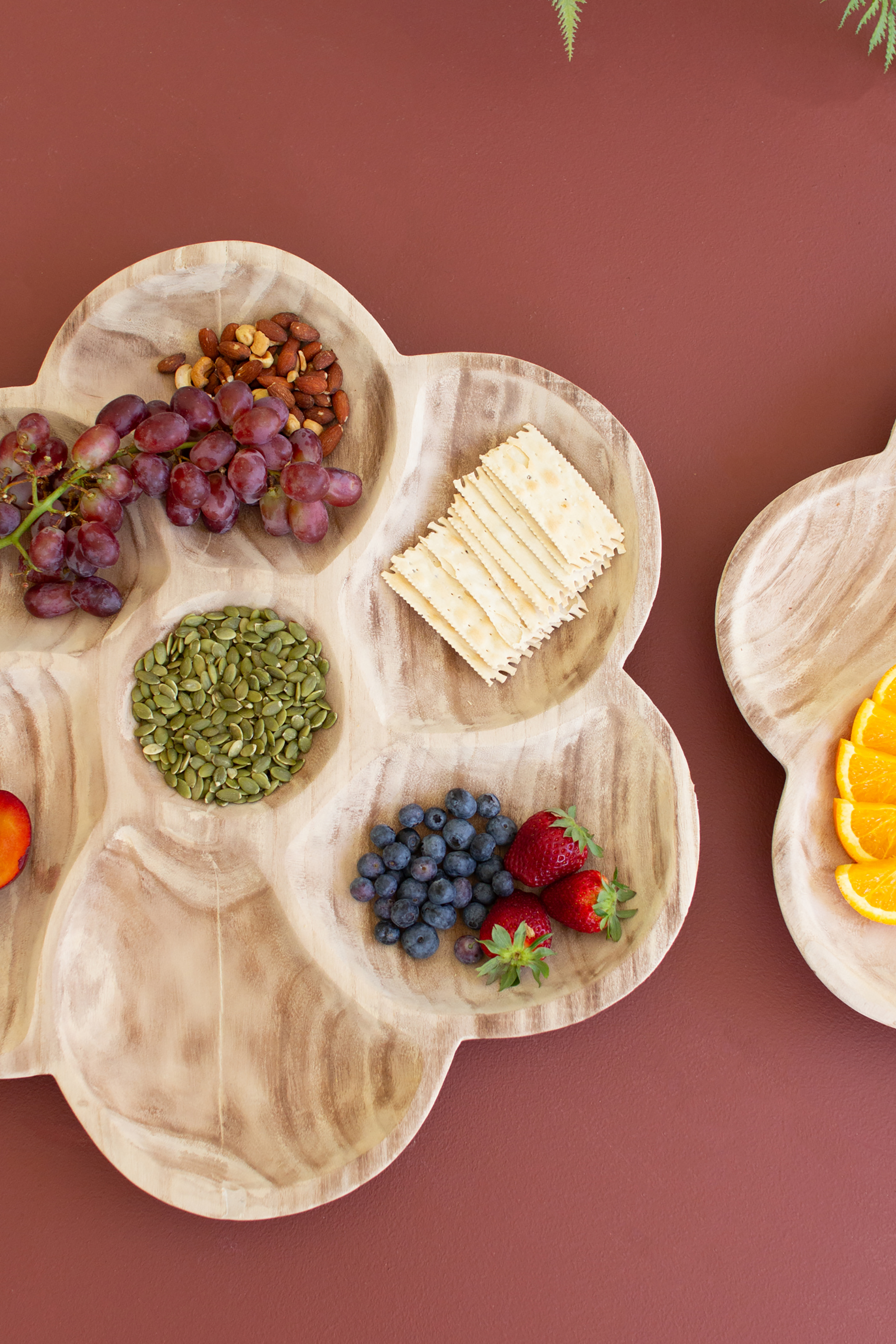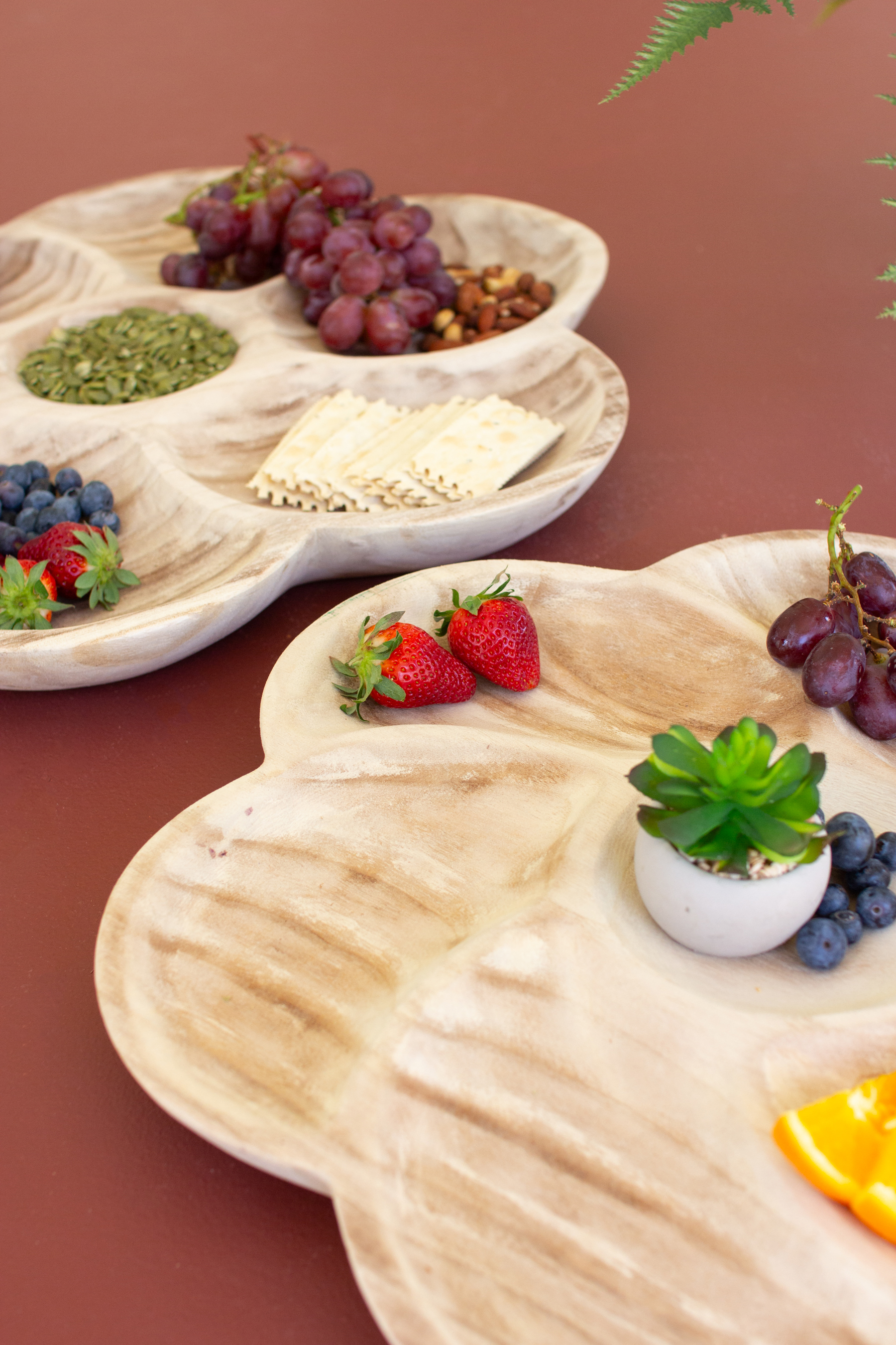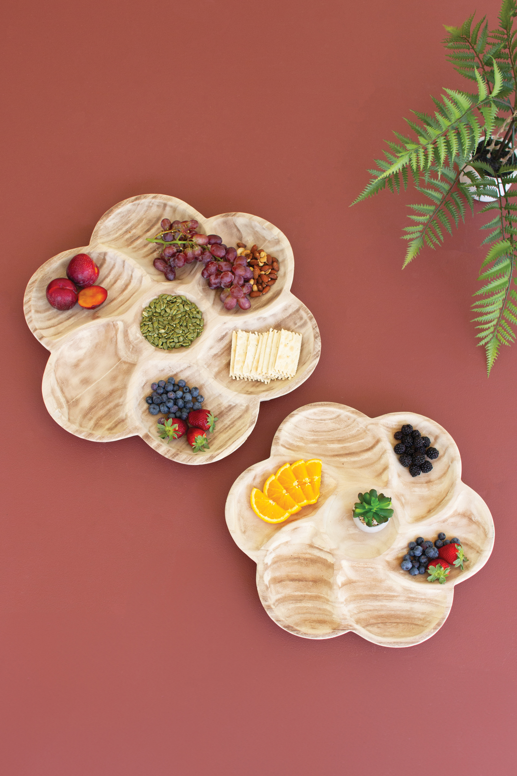 Home > SET OF TWO CARVED WOOD FLOWER PETAL PLATTERS