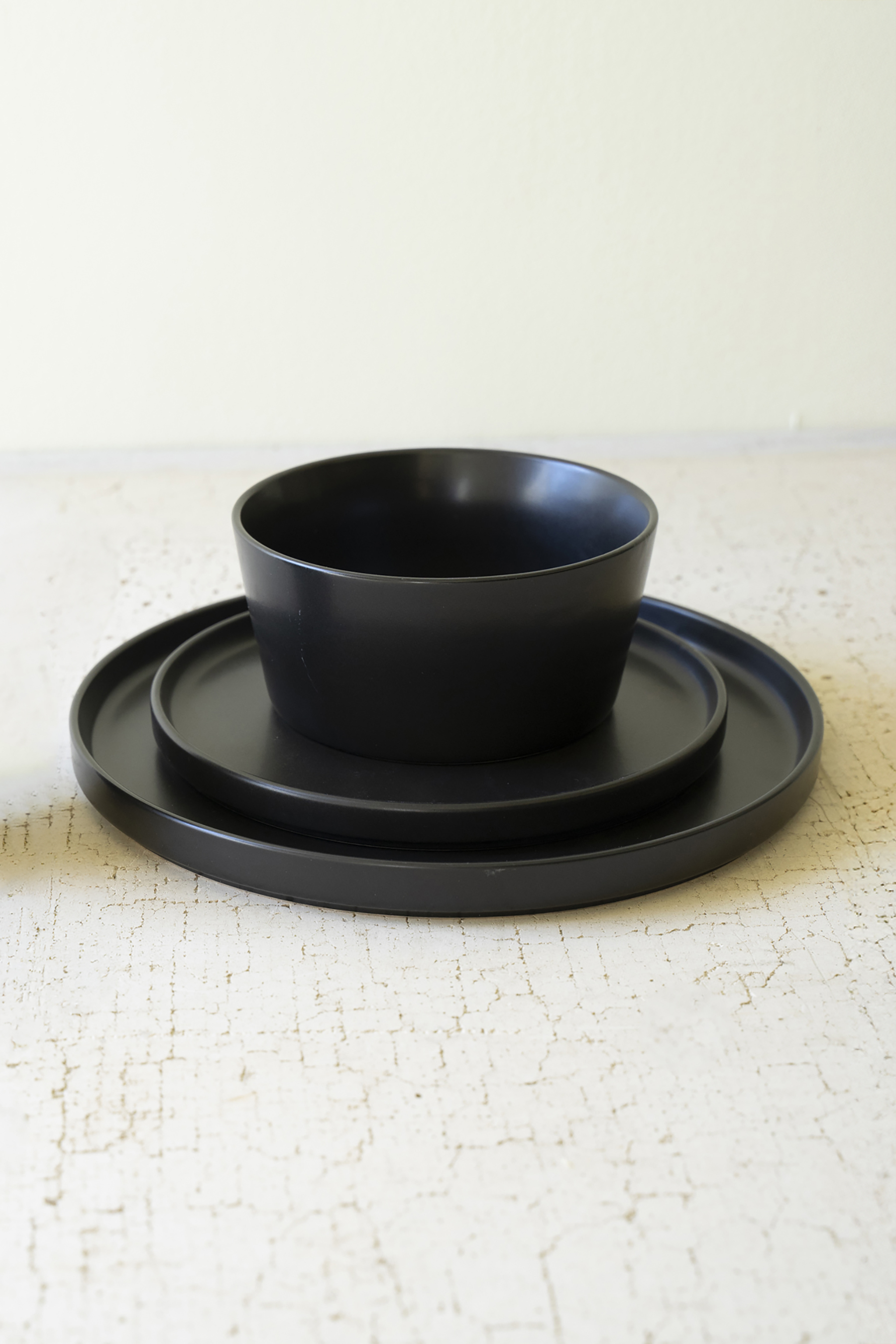 SET OF THREE BLACK CERAMIC DINNER PLATE, SALAD PLATE, BOWL SET OF THREE BLACK CERAMIC DINNER PLATE, SALAD PLATE, BOWL