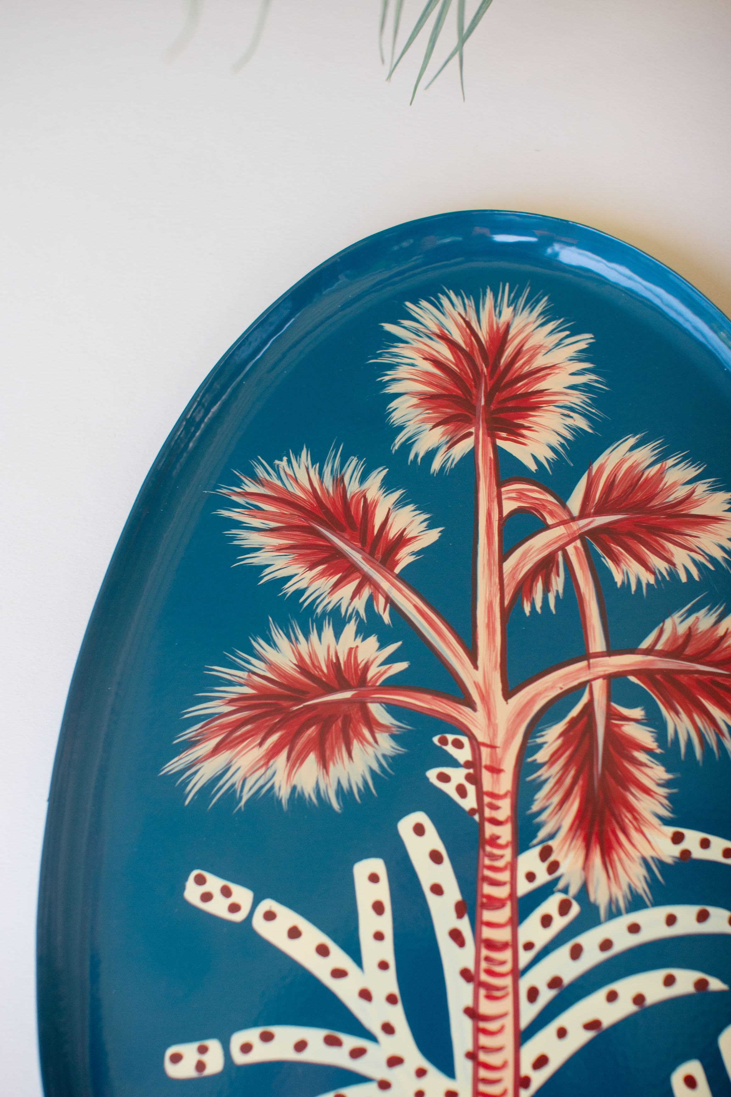 SET OF THREE HAND-PAINTED OVAL TRAYS - BOTANICAL