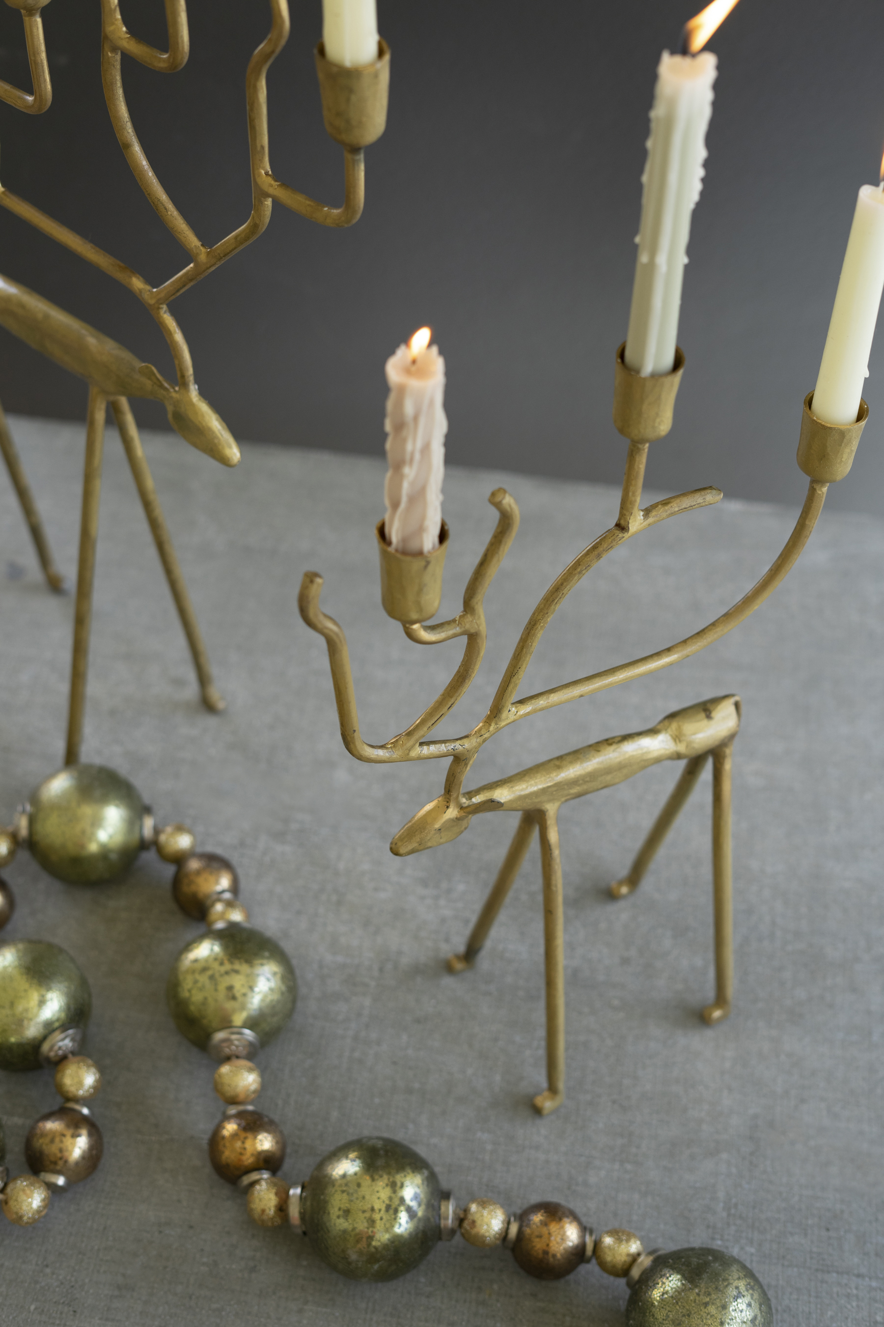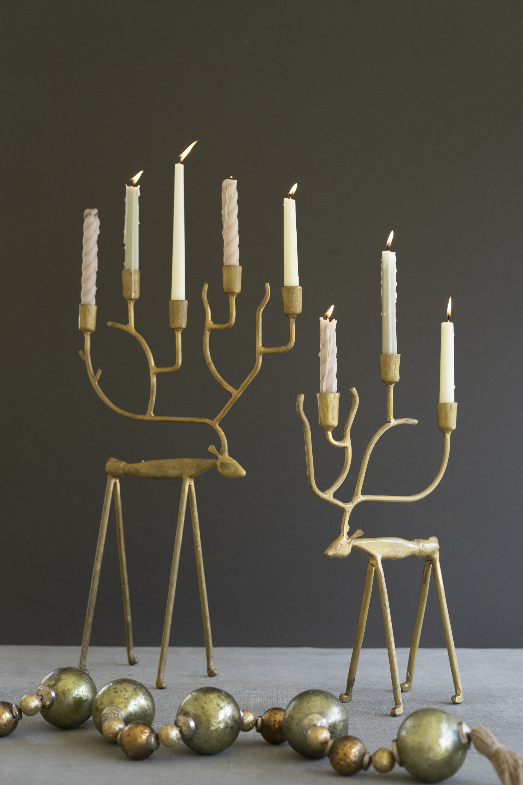 SET OF TWO FORGED CHRISTMAS DEER TAPER CANDELABRAS - ANTIQUE GOLD SET OF TWO FORGED CHRISTMAS DEER TAPER CANDELABRAS - ANTIQUE GOLD SET OF TWO FORGED CHRISTMAS DEER TAPER CANDELABRAS - ANTIQUE GOLD