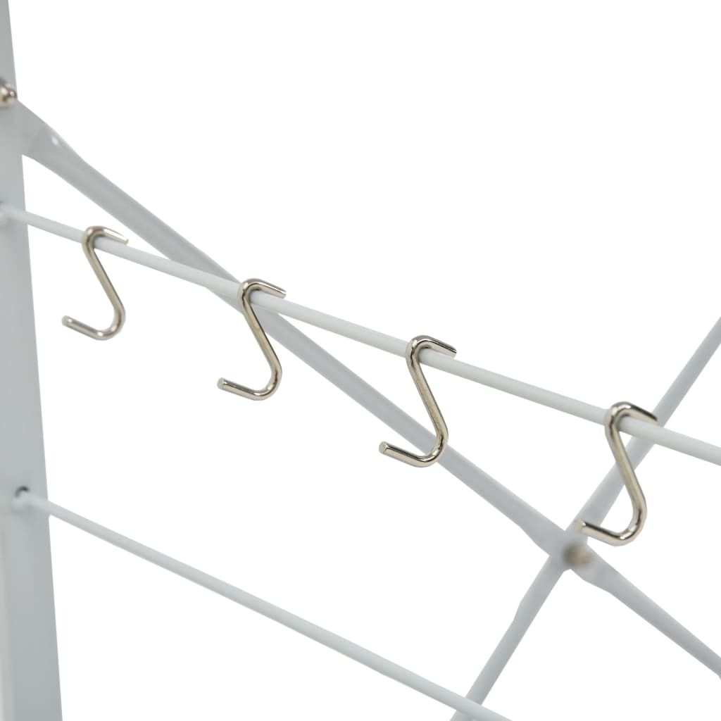 made of engineered wood, this kitchen shelf is easy to clean with a damp cloth. The steel structure adds to its sturdiness. This shelf has 3 tiers, which provides with you with ample space for storing things. This cabinet includes side accessory hooks for hanging pots, pans, utensils, oven mitts and more. You can also use it in living room or office for displaying your collectables, photo frames, etc.