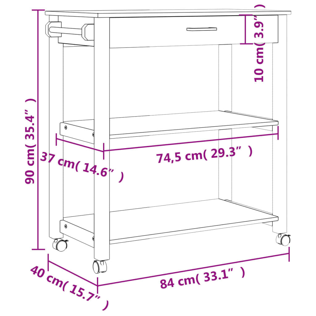 Home > Kitchen Trolley MONZA 33.1"x15.7"x34.8" Solid Wood Pine