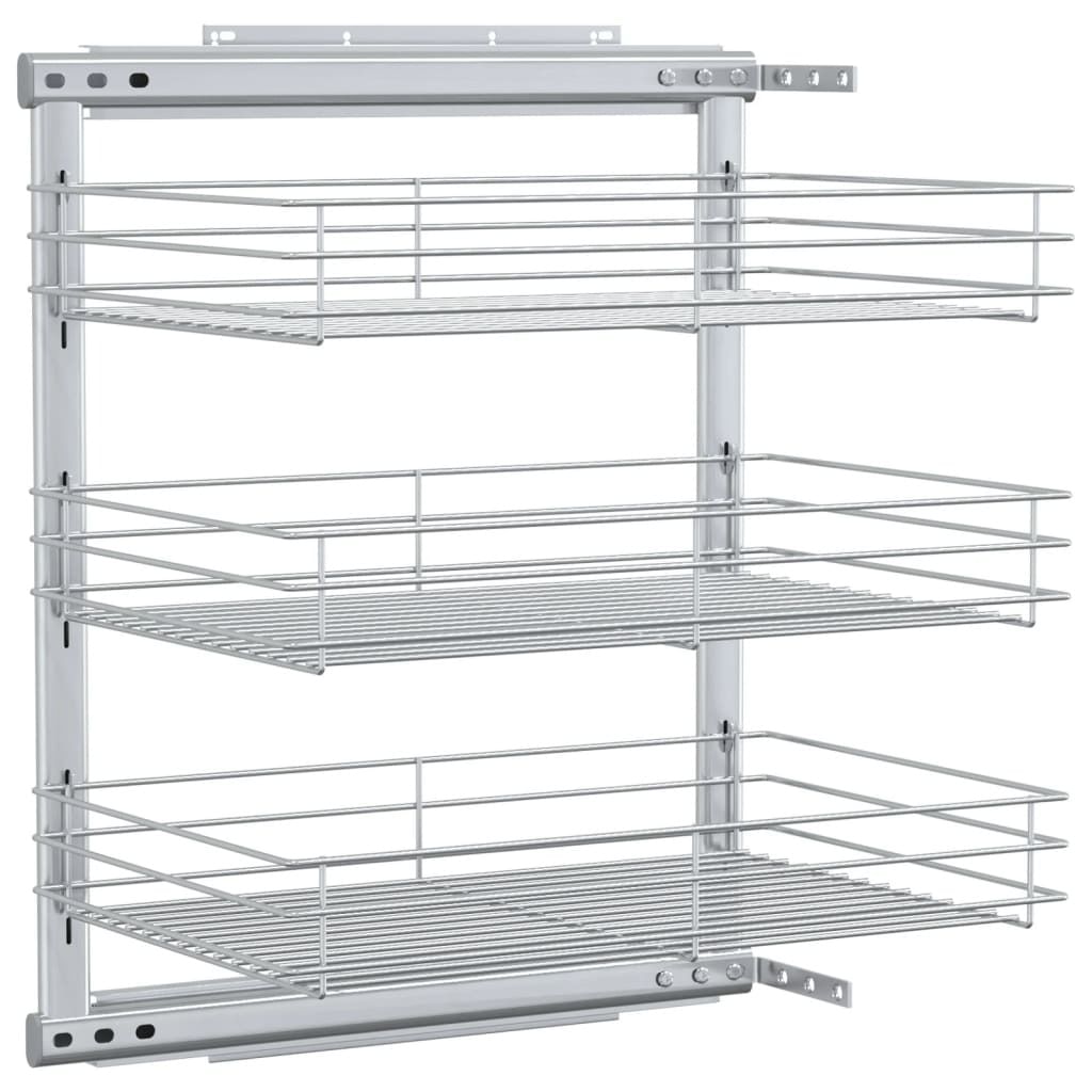 3-Tier Pull-out Kitchen Wire Basket Silver 18.5"x13.8"x22"