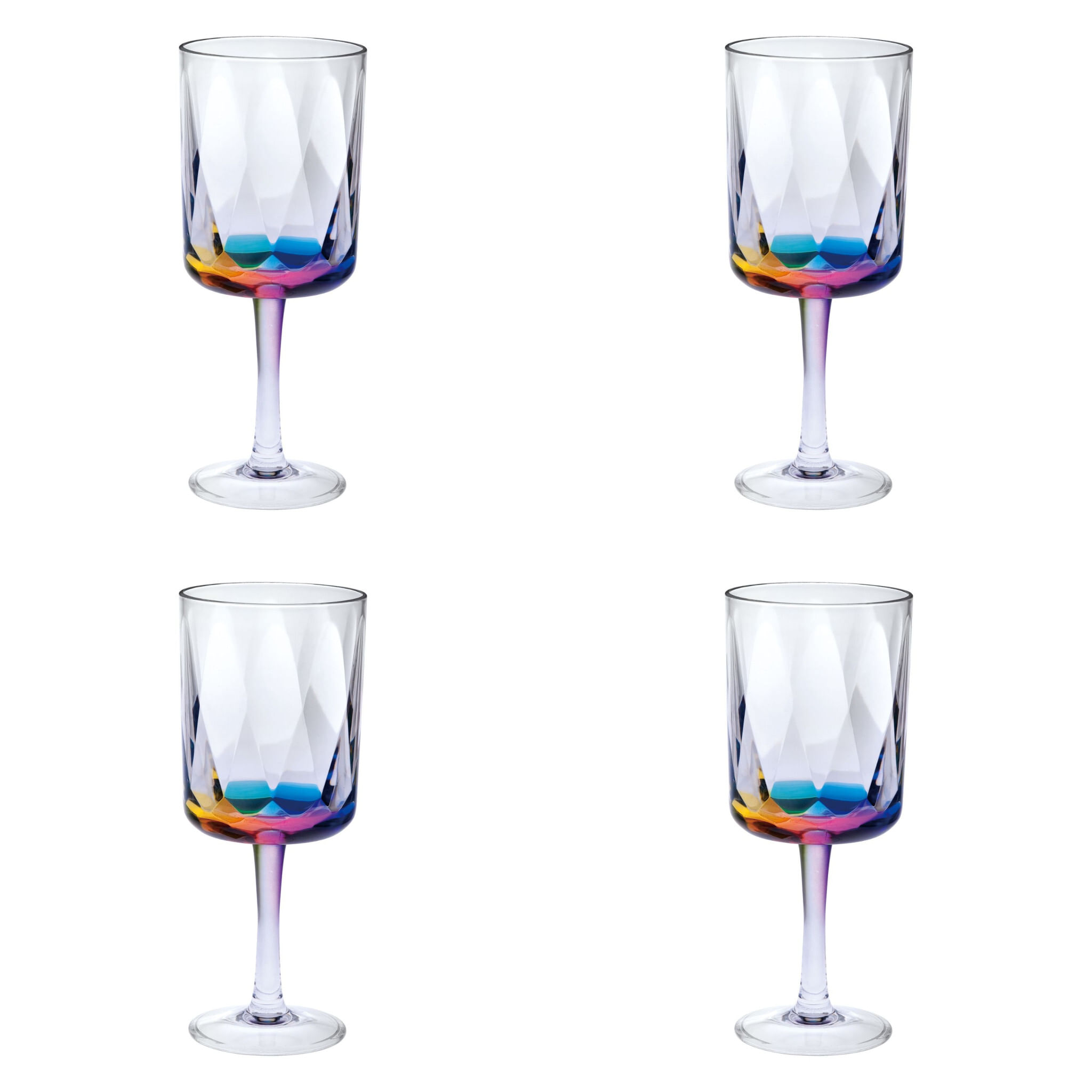 Set of Four Clear and Rainbow Geometric Acrylic Stemmed All Purpose Wine Glasses