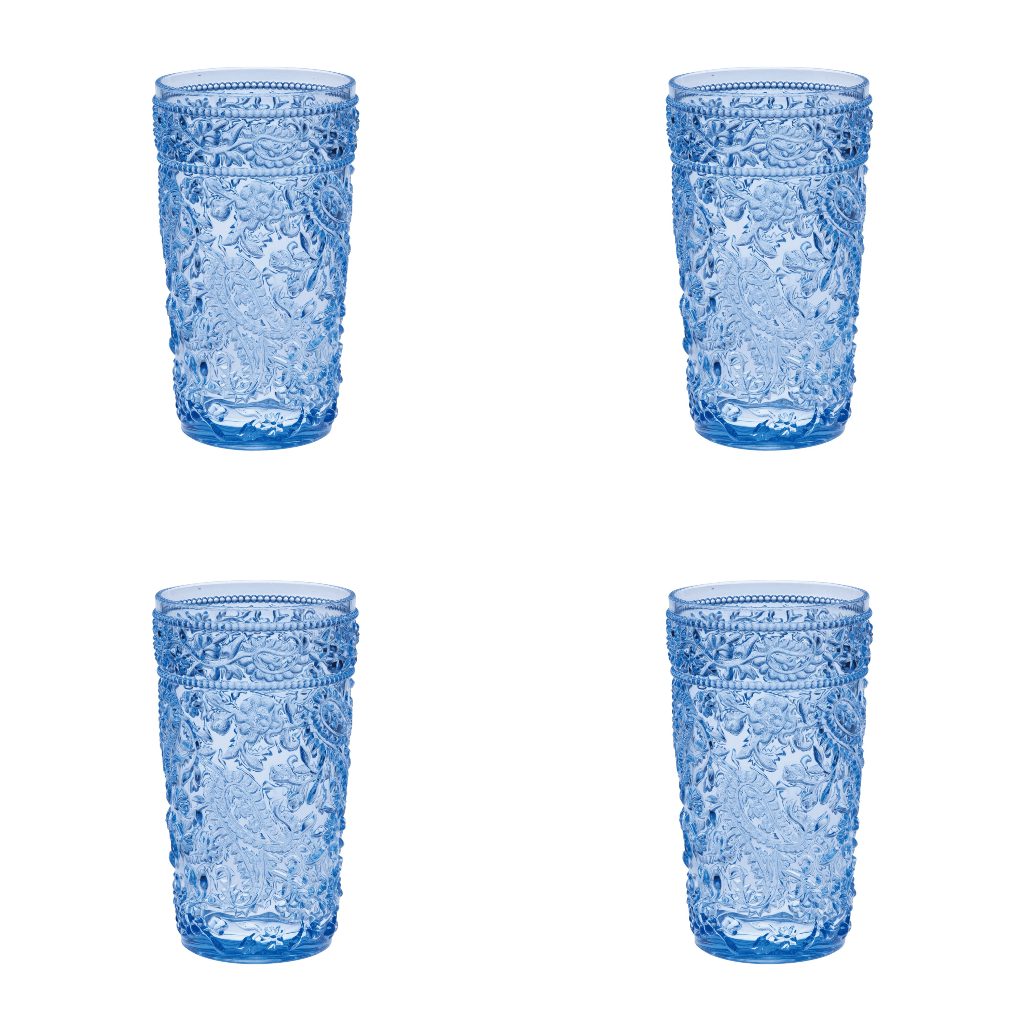 Home > Set of Four Blue Paisley Acrylic Stemless Highball Glass